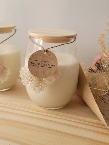 Vela / Velón de Soja super aromática en su porta vela de Vidrio Bombé Alta con tapa de Madera de Pino a Medida.
